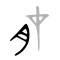 Some say it’s a plough; others say its a turned version of the symbol for a snake or a fetus. The right-hand component of the current character 以 wasn’t added until modern times. It’s a person, and in Western Zhou Bronze Inscription that looks like this: